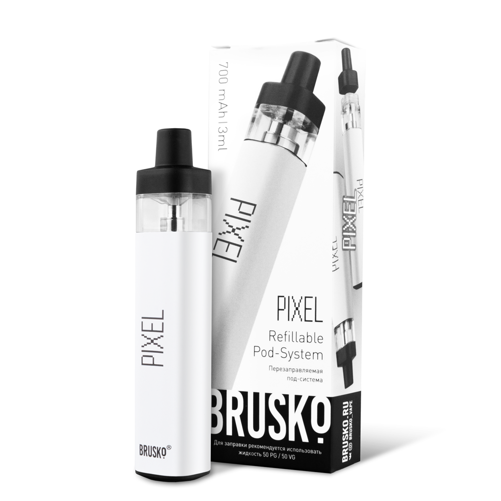 Перезаправляемая Под-Система Бруско Пиксель (Brusko Pixel) 700 mah, Белый - купить в Каменке